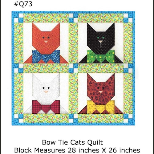 Cat Quilt Sewing Pattern Cat Block Applique Cats Bow Tie Cats Etsy